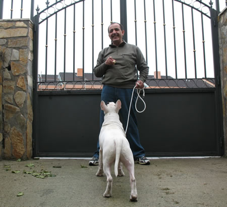 Agradecemos a la Revista española del Mundo del Perro los honores que ha hecho a este bellísimo bull terrier al sacarlo en portada y a su dueño por el gran trabajo realizado con él en sus 2 años de vida. (El mérito es de los dos. J.F.) |